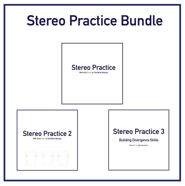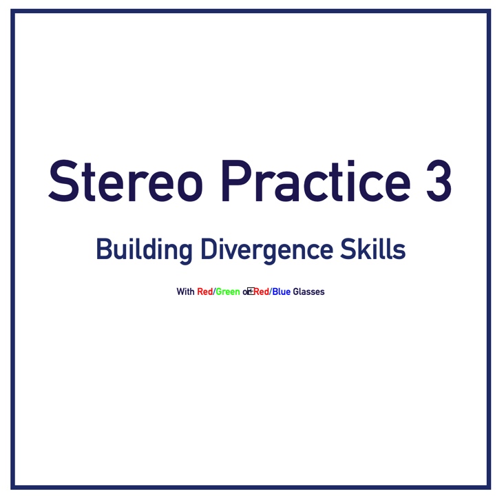 This PDF contains 20 levels for convergence and 20 for divergence to help build and expand fusion and stereo. It is designed for use on a large screen to focus on peripheral fusion. Instructions are included on the first page of each set. Three color options are available with this purchase, chose the one that works best for you!