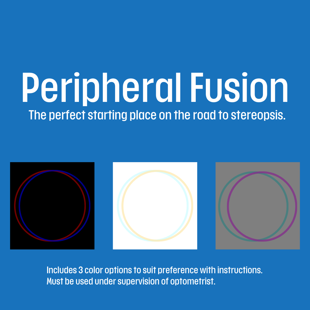 This PDF contains 20 levels for convergence and 20 for divergence to help build and expand fusion and stereo. It is designed for use on a large screen to focus on peripheral fusion. Instructions are included on the first page of each set. Three color options are available with this purchase, chose the one that works best for you!